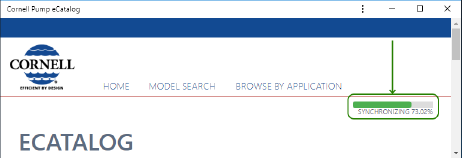 Depending on internet speed and the number of drawings and curves in the catalog, synchronization times will vary. Typically, synchronization times will range between 2 and 5 minutes. The website must be kept open during synchronization, and the eCatalog is fully functional during this time. A progress bar will display the current synchronization progress.